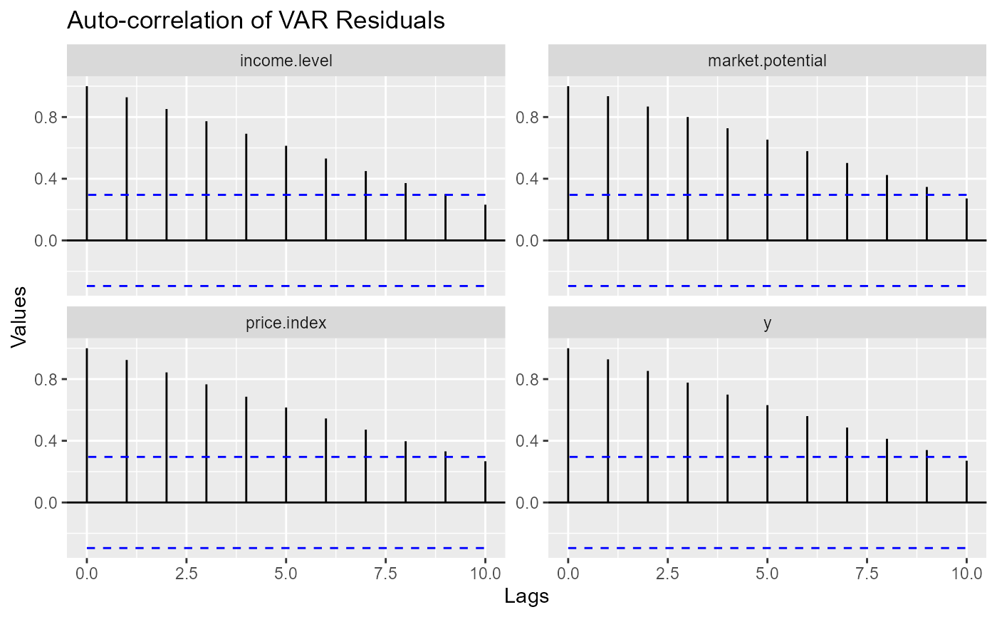 Given a dataset or VAR model to get residuals from, ggvar_acf plots the