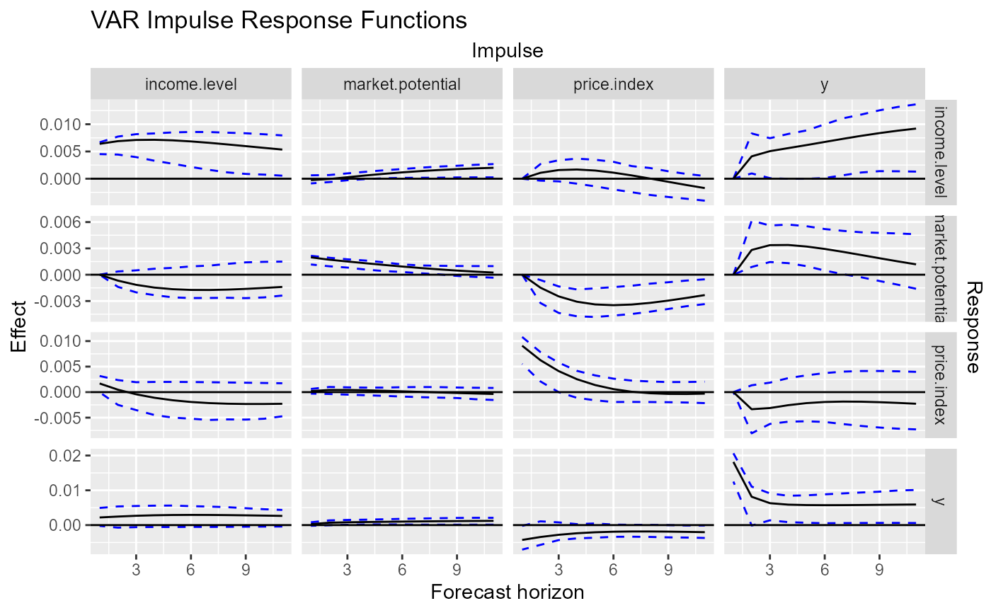 An integer. The size of the forecast horizon, passed to irf. Unused if